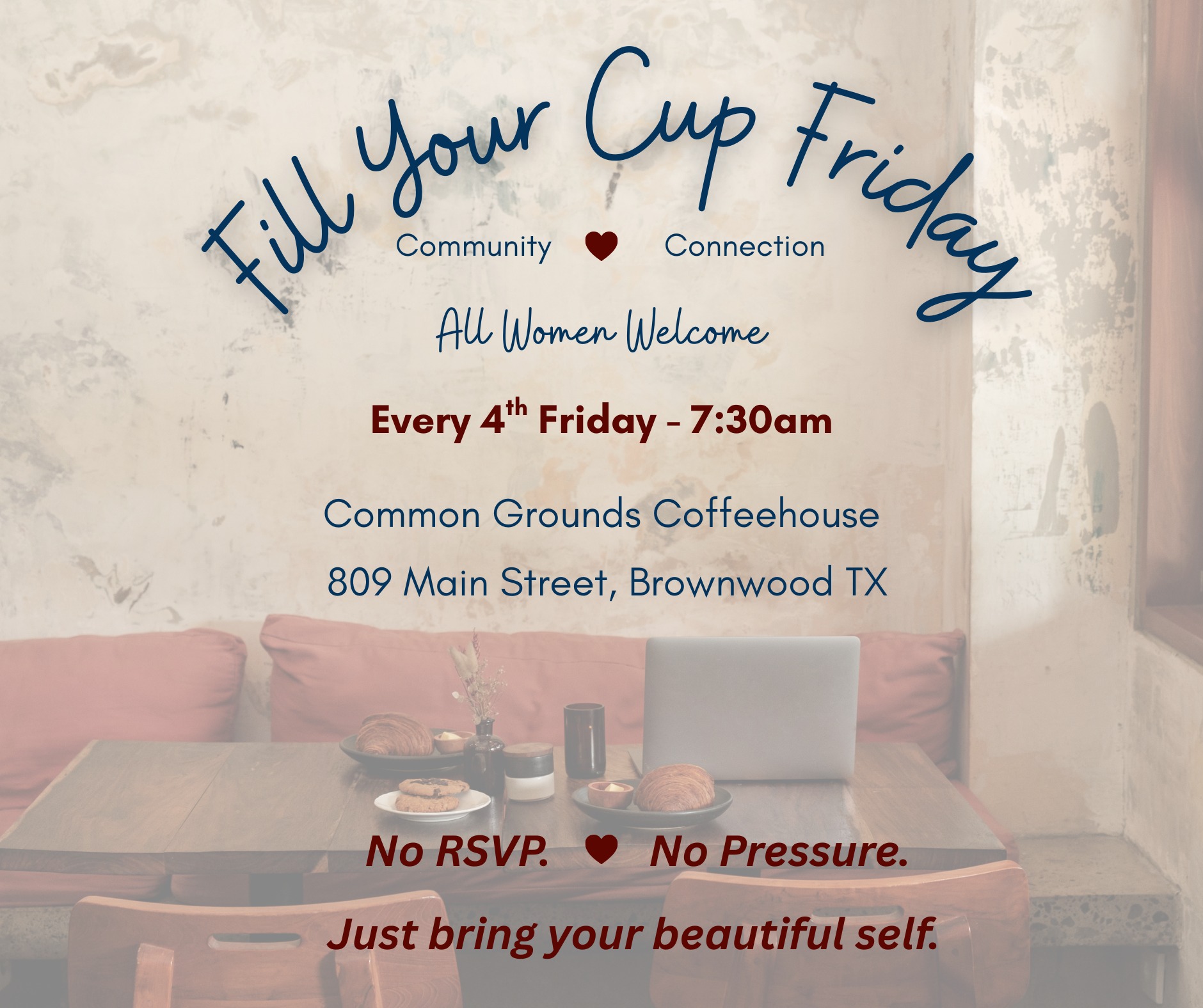 Fill your cup. ☕ Literally and emotionally. Join us every 4th Friday for a laid-back morning of coffee, connection, and community with women who just get it. Whether you’re laughing, venting, brainstorming, or just need a hug and a caffeine fix — you’re welcome here. We created this space because women are so good at taking care of everyone else… and not so great at carving out time for themselves. Consider this your permission slip to put you first — even if it’s just for a cup of coffee and some real conversation. 👯‍♀️ No pressure. No RSVP. 💬 Just show up and be yourself. ❤️ Bring a friend or come solo — we’ll save you a seat